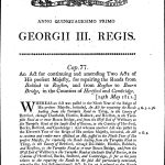 The first turnpike in England was established by the Road Repair (Hertfordshire, Cambridgeshire and Huntingdonshire) Act 1663 covering a section of the Great North Road. The number of turnpike roads increased in the early 18th century and there was substantial growth between 1750 to 1775; a period of “turnpike mania”.