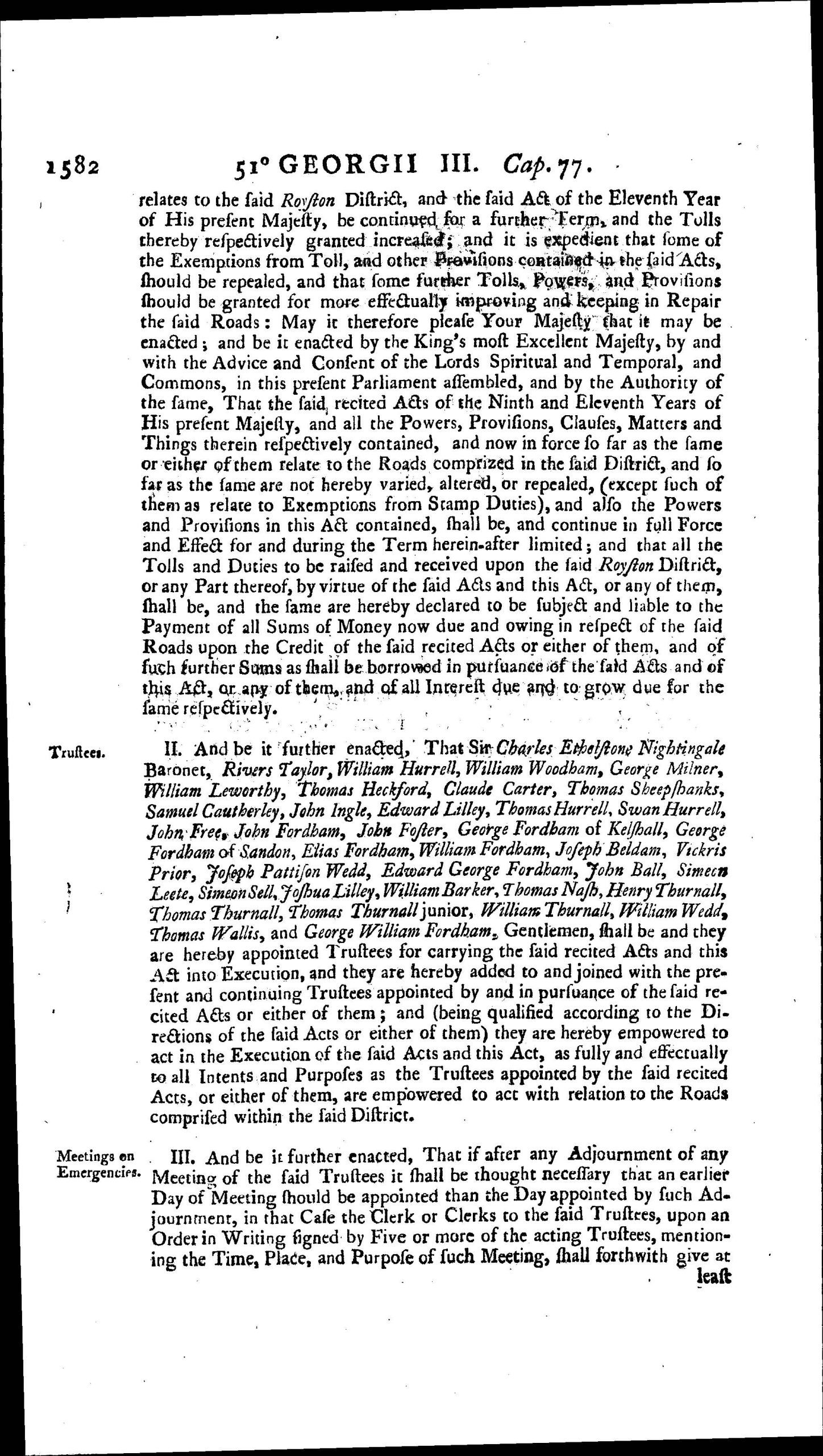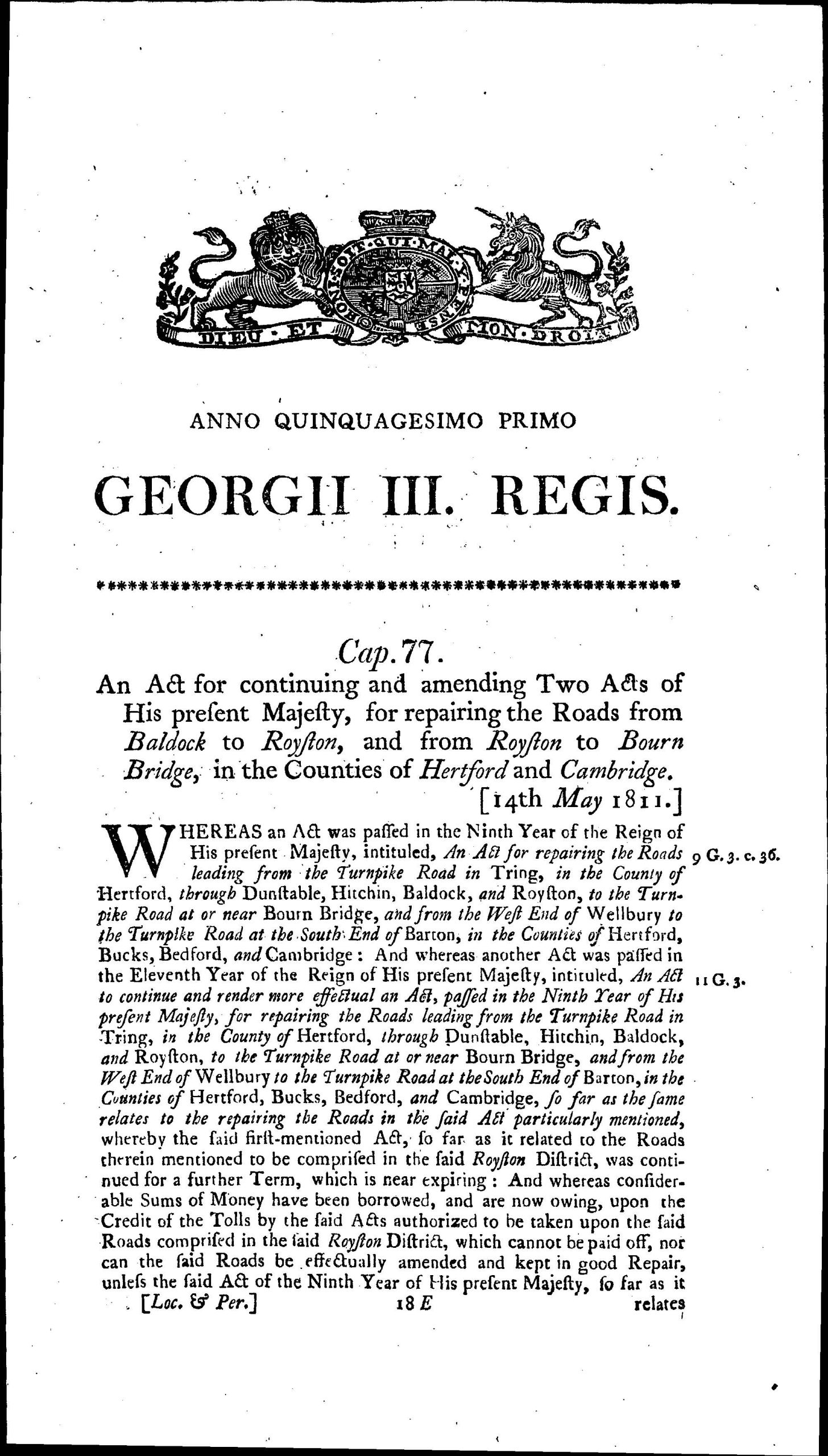 Baldock Royston and Bourn Bridge Roads Act 1811